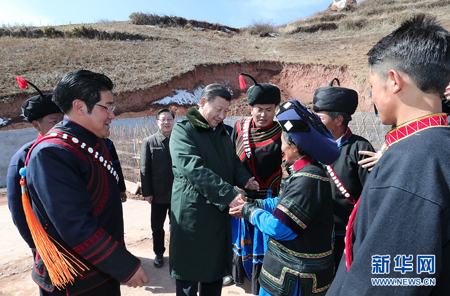 席大大总书记在凉山彝族自治州昭觉县解放乡火普村了解易地扶贫情况。新华社记者 谢环驰 摄